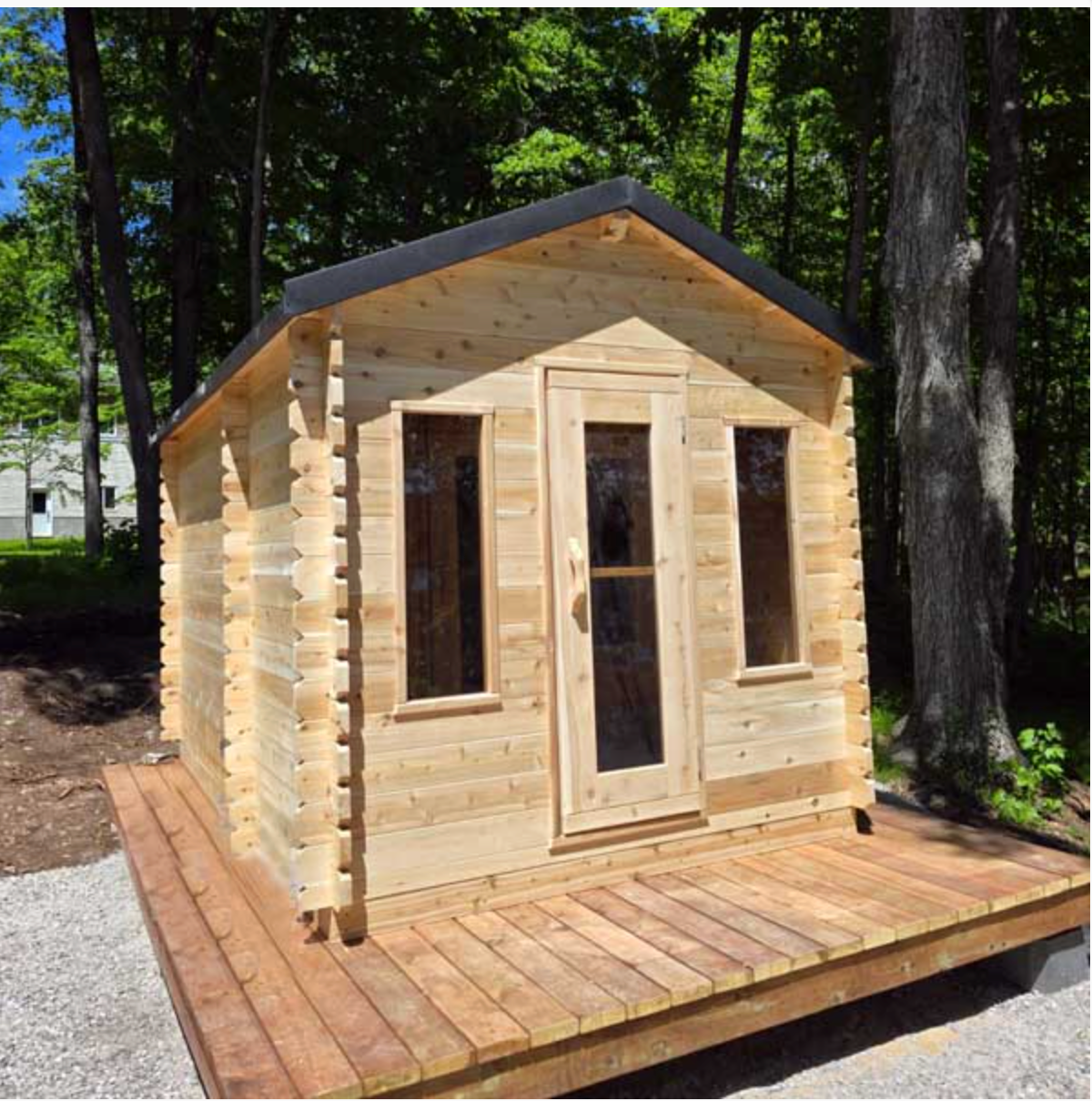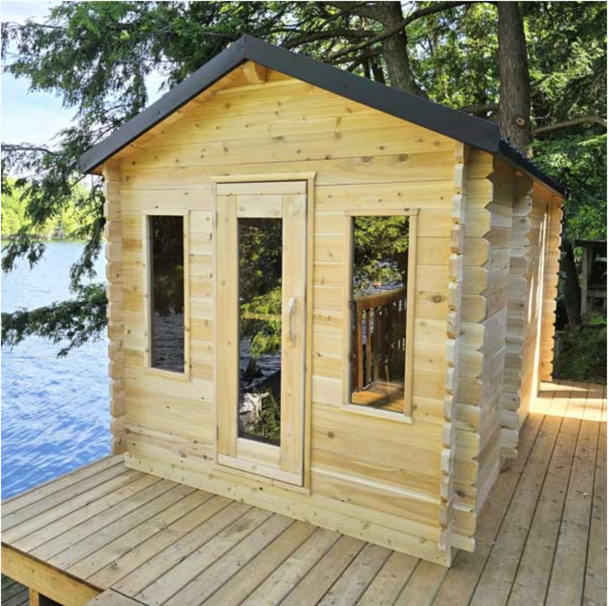 Featuring a classic cabin-style design, this sauna blends seamlessly into cottages and residential outdoor spaces. The integrated changeroom adds convenience and privacy, providing a comfortable transition area before and after each sauna session. Delivered in a convenient kit format, the Georgian Cabin Sauna is designed for durability and straightforward installation.