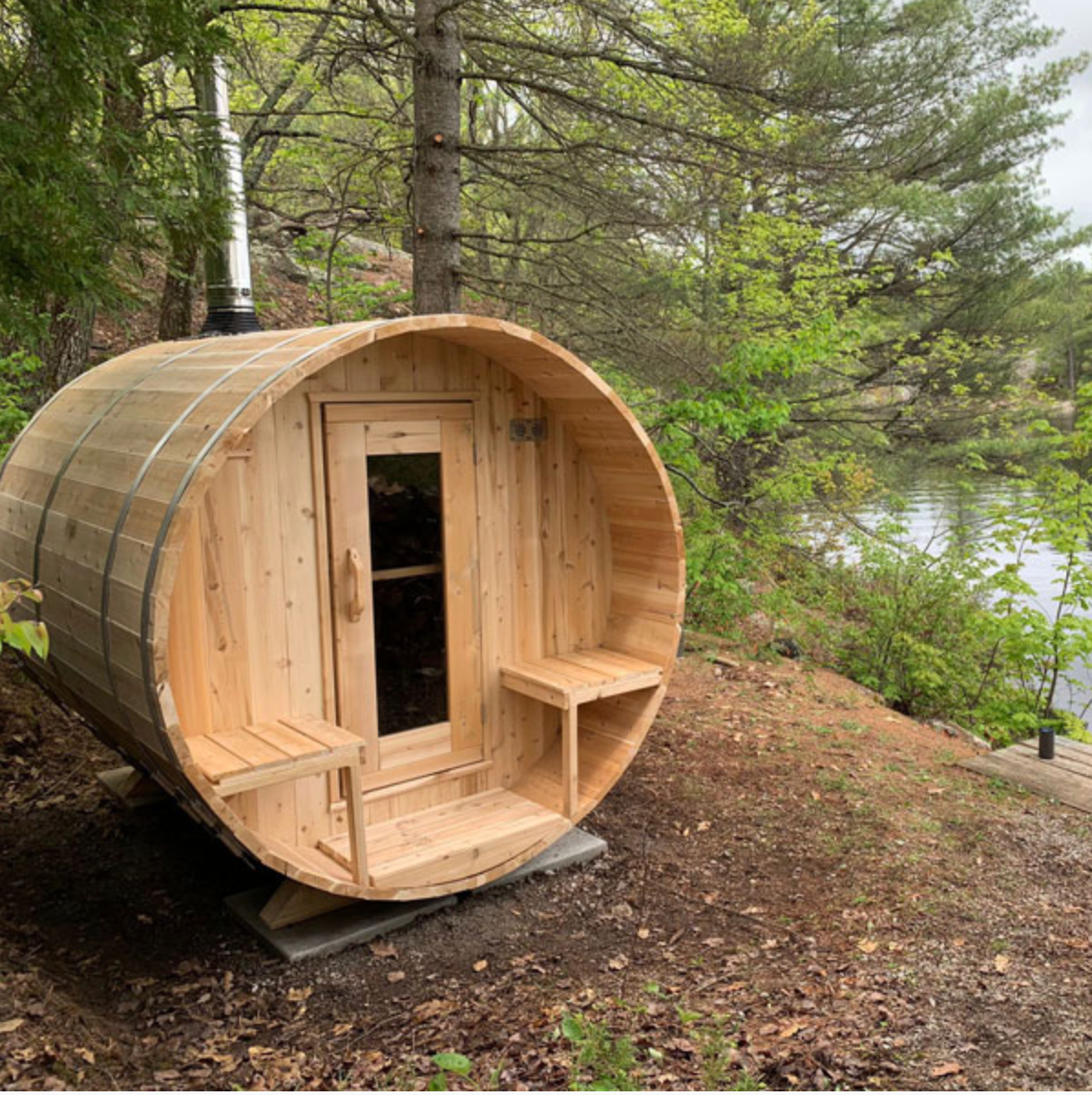 Blending authentic Canadian craftsmanship with thoughtful design details, this sauna delivers long-lasting quality, timeless style, and a relaxing sauna experience for any backyard or outdoor retreat.