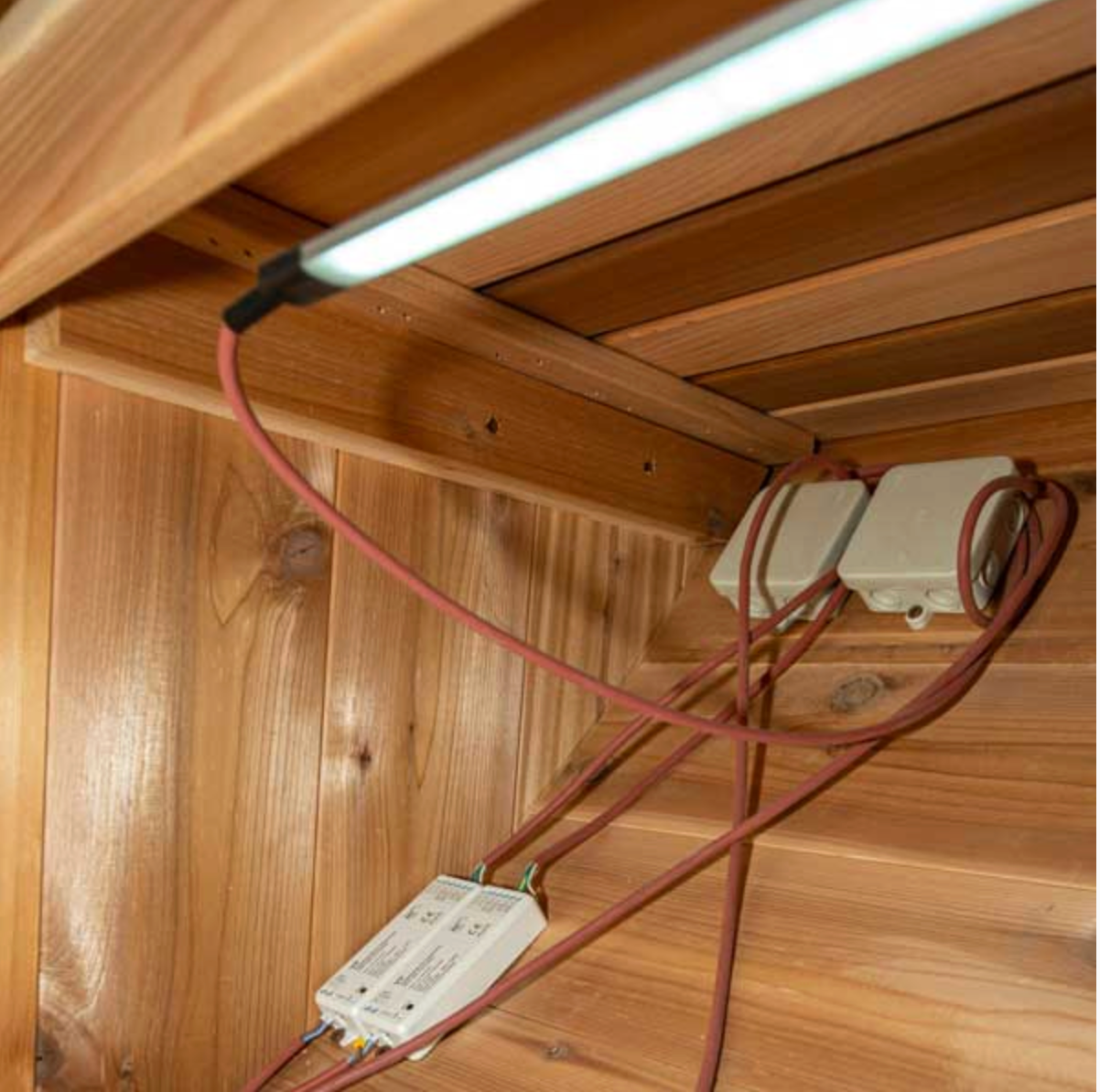 This dual bench lighting set is designed to elevate your sauna atmosphere with soft, even illumination on both sides of the room. The kit includes four LED lighting strips and all necessary hardware for flexible installation under upper or lower tier benches, or beneath one bench and one backrest on each side of your sauna. A single remote controller allows for simple, centralized control of the lighting.