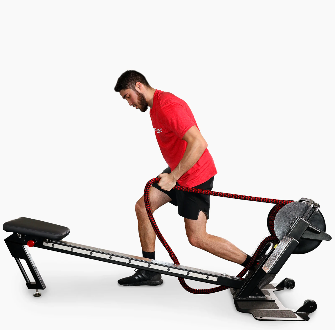 Experience the ultimate in rowing and functional training with the RX3200 Endless Rope Rower. This multi-functional machine features a sliding seat for full-body rowing and pulling motions, while also allowing for stationary arm-focused exercises or standing rope pulls for upright workouts.