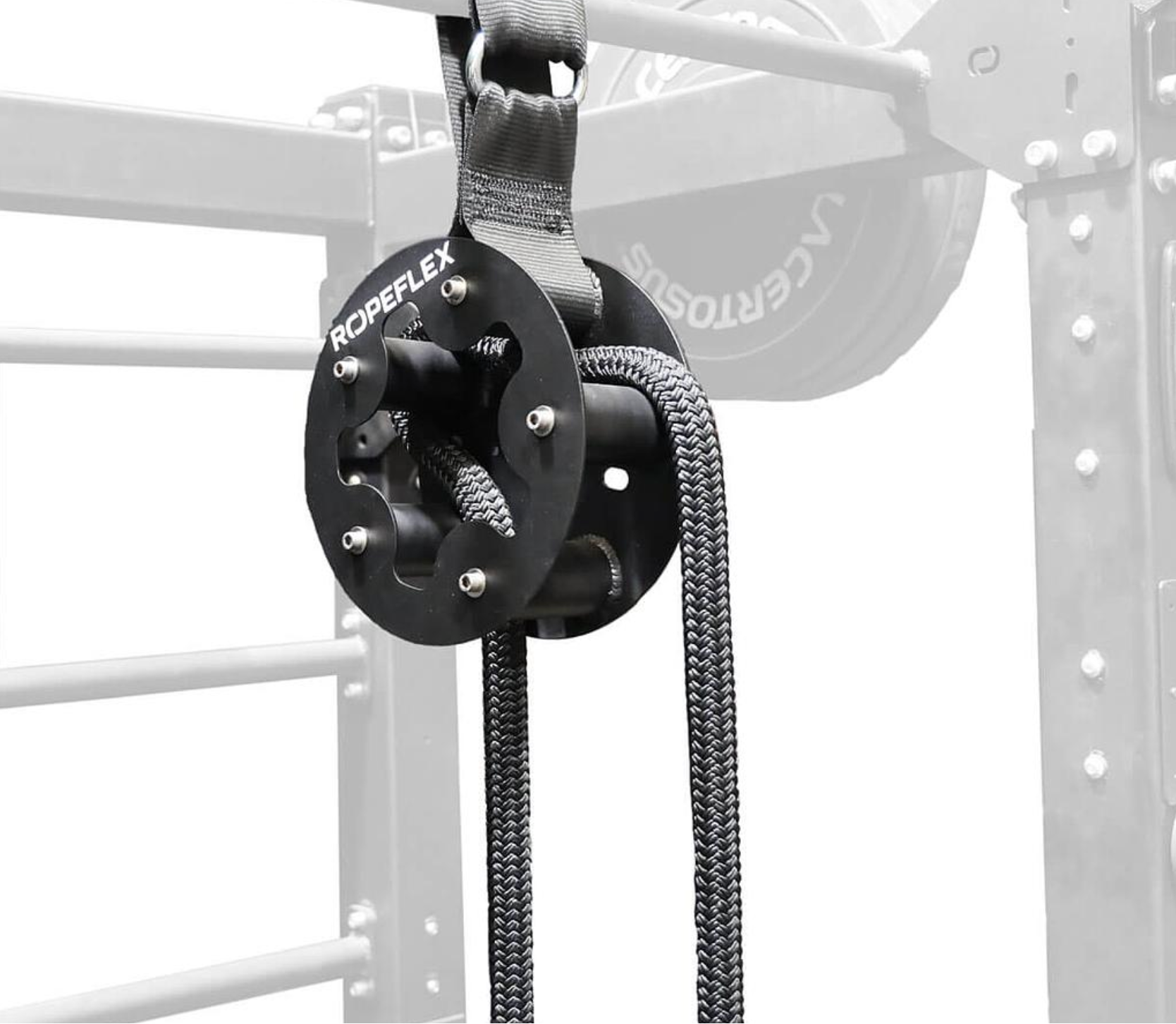 The RX505 Endless Rope Drum comes with a clamping plate and screws for easy installation on square or rectangular beams. The included RX505 Strap allows quick, secure attachment to pull-up bars without damage or noise. Featuring a Twist-Lock Alloy Steel Carabiner, it lets you slide the RX505 from side to side, making it easy to move when the bar is needed for chin-ups, pull-ups, or muscle-ups.
