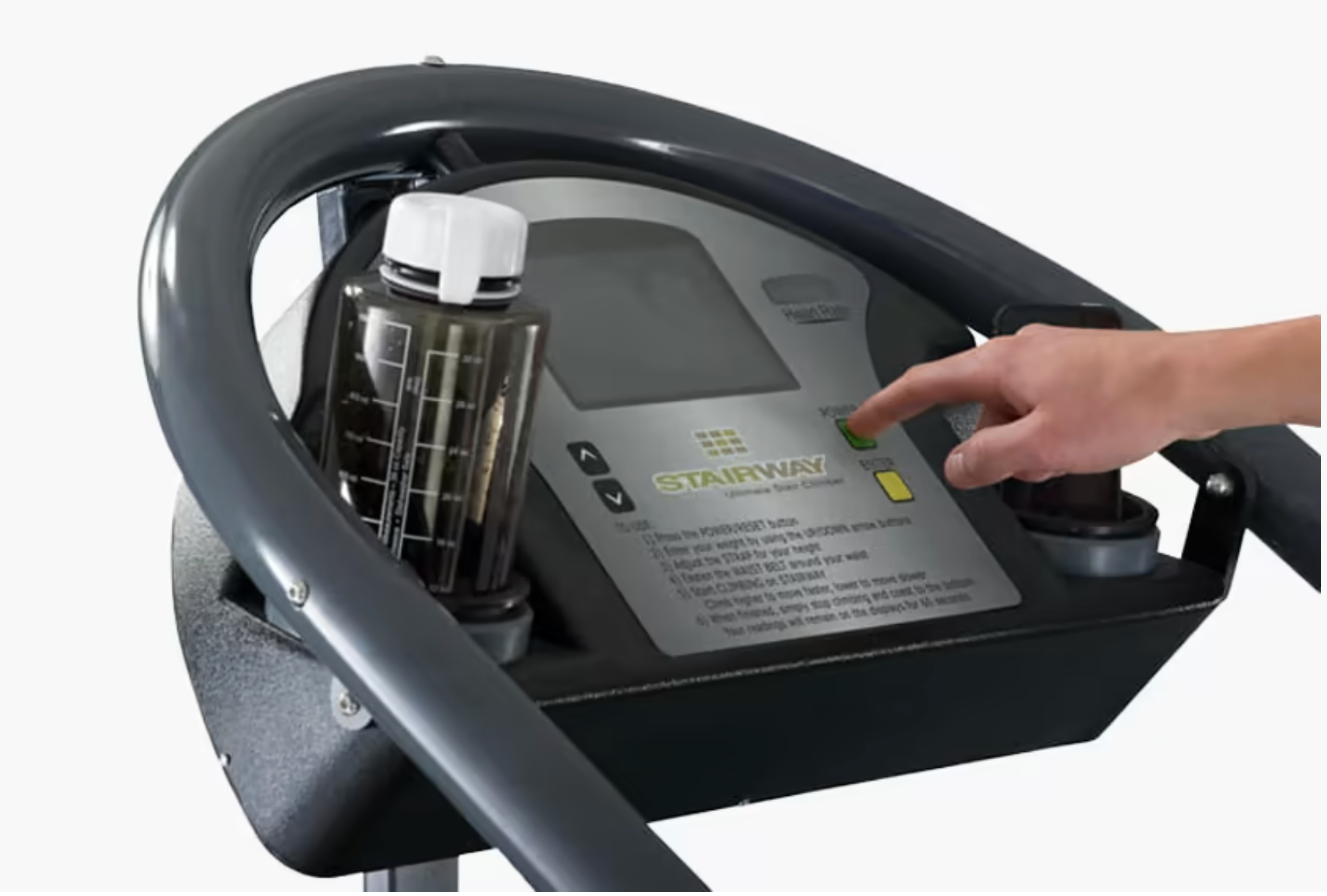 Built for durability and long-term performance, the Stairway GTL features a welded tubular steel frame, powder-coated steel handrails, steel steps with polyvinyl treads for secure footing, and a rugged ABS plastic housing. The integrated digital display provides real-time workout feedback, including elapsed time, steps climbed, climbing rate (steps per minute), calories burned, and wireless heart rate monitoring.